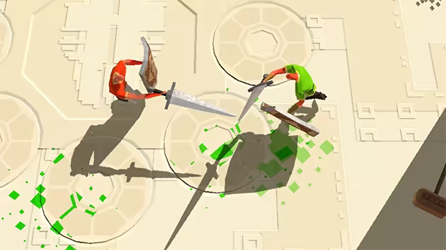 Our unconventional twin stick control scheme lets you wreak havoc on your opponents. Analogue sticks and triggers directly translate into character and weapon control, enabling you to time your swings, throws and stabs. Swordy’s weapons and damage model are completely physics based, you’ll need to master the momentum and weight of your character and weapon together to fight effectively. It’s easy to pick up but leaves a lot of space for mastery.