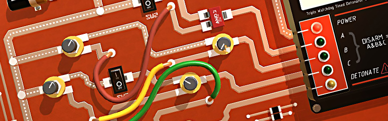 分析电子板的运作方式,确定如何使雷管失效. 但小心,切断错误的电线 或翻转错误的开关 可能只是触发炸弹。