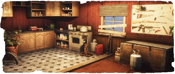 Settle into your new home by using pegboards, player storage and blueprints to put your stamp on the place. Physically place your items in the world to make your perfect survival hideout.