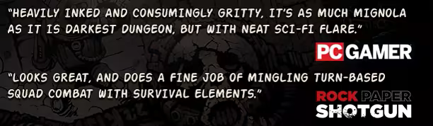 创建并控制一支最多三名雇佣兵的小队,从你的拾荒者基地所及之处开始探索这艘被遗弃的飞船。在遗迹中寻找宝物和线索。你会遇到很多友好的住民和商人,但更常见的将是——各种种类的敌人。在战术回合制的战斗中挑战并战胜他们,随机抽取的卡牌将塑造你的战斗方式。为你和你的队员赢得经验、搜刮尸体、回到基地进行补给和升级。在拾荒者的母船中治疗、升级、更换和装备你的雇佣兵,升级他们的装备或在任务期间补充生命支持系统的能源。