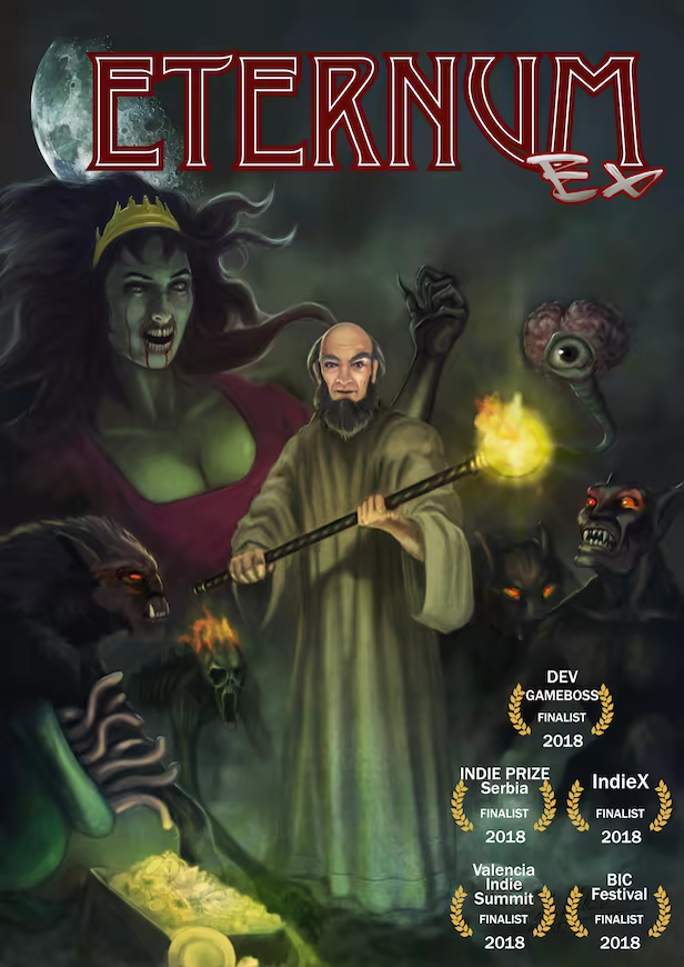 Eternum Ex is a retro platform video game with the look and feel of the ’80s arcade cabinet games. Titles that have inspired and most influenced its creation are: Bomb Jack (Tehkan, 1984), Ghosts’n Goblins (Capcom, 1985), Baluba-louk no Densetsu (Able, 1986) and Psychic 5 (Jaleco, 1987).