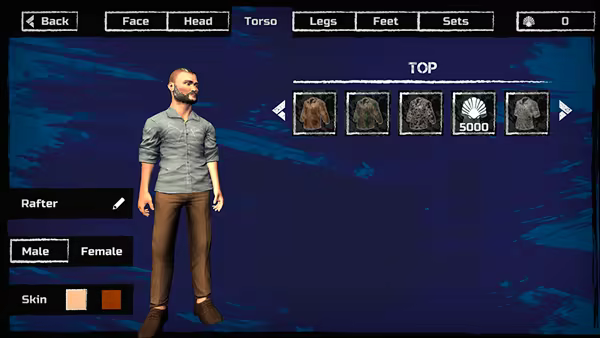 一场可怕的飞机失事夺走了所有乘客和机组人员的生命……除了一个。 你在无尽的海洋中生存,现在你必须挑战命运,为你的生命而战。 令人筋疲力尽的阳光、可怕的雷暴和在附近奔跑的饥饿鲨鱼,不反对考验你和你的木筏,将成为你不变的伙伴。 获取资源和食物,学习新建筑的蓝图并建造你的木筏。 别忘了留意你的口渴和饥饿! 5人多人游戏 获取资源,建造您的木筏,并在这片无尽而危险的海洋中互相帮助生存。 请记住,团队合作是您生存的关键! 工艺与建筑 超过 60 种不同类型的有用工艺和建筑! 你可以在大海中央建造一座宏伟的房子! 岛屿 10 个独特的岛屿,各有各的危险、奥秘和宝贵的宝藏等着你。 但在航行之前,不要忘记储备武器和食品。 冒险等待! 角色定制 数百种不同类型的服装和配饰组合将帮助您展示您的个性并在您的团队中脱颖而出。 以风格生存! 流浪商人 孤独的流浪者很乐意与您分享他旅行中的有趣故事,为您提供有用的建议,并为新建筑的蓝图交换您的资源。