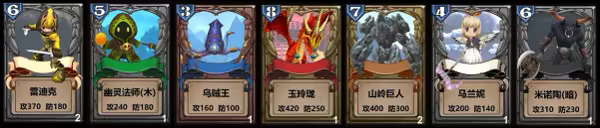 角色卡按属性可分为7种:金、木、冰、火、地、雷、暗,属性之间相互克制。