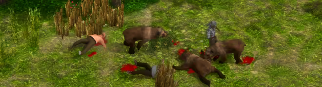 另一個危險來自周圍的動物。即使大多數動物會避開人類,你也應該小心對待狼或熊。牠們可能會導致居民重傷或死亡。