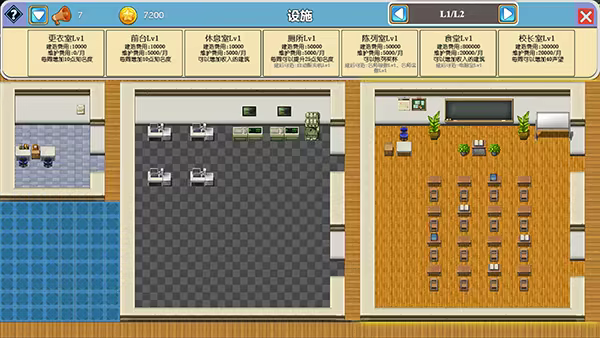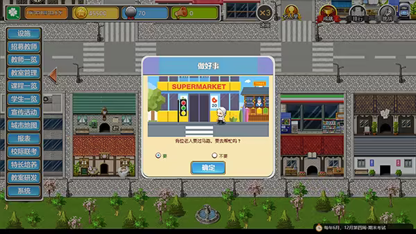 游戏中包含了比如数学竞赛、语文竞赛、英语竞赛、期中考试和期末考试等活动事件,您可以在这些事件中获得声望,进一步提升师资力量。除此之外,还会有各种校外的随机事件,都会对我们的经营产生影响。