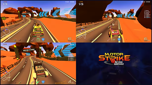 在四屏分割模式下独自游玩或与好友游玩,或者通过在线模式与多达 8 位疯狂赛车手一同游玩!