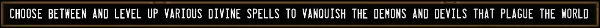 从四个神咒中选择,每个神咒进行不同程度的破坏,并具有其他效果,如生命偷盗和作用区域. 每个咒语都花费一定的玛娜来铸造,让你可以选择各种游戏风格,可以将自己的性格建向.