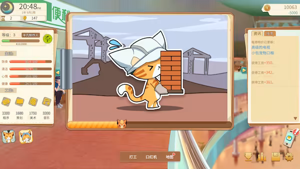 《游戏开发的二三事》游戏中玩家扮演一位刚入行的小年轻,主要游戏目的就是完成吃饭,睡觉,锻炼,打游戏这些日常操作维护好自己的生活属性,在学习中提高自己的工作属性,制作自己感兴趣的游戏获取收入。