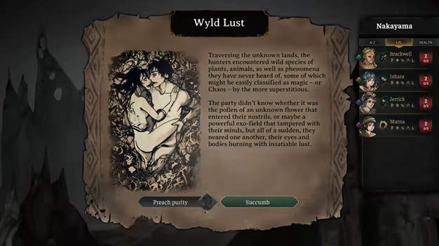 Before each skirmish, you will resolve a series of events that may turn the incoming battle into a walk in the park… or a one-way visit to hell. Before you decide which path to take, take your hunters’ stats, traits, traumas – and even genders! – into consideration. After all, you wouldn’t want to enter a fight blind, would you?Choose from the different tribes, tailoring their unique abilities and playstyles to complement your hunters' strengths and weaknesses. Will you focus on nurturing and ensuring each Ritual of Seven Senses is a success, leading to the birth of healthy offspring, or will you lean towards a more aggressive approach, enhancing your capability to deal more damage and crush more bones?