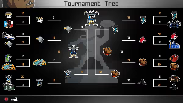 带你的队伍通过一个括号式的锦标赛树 看能不能成为一个传奇的队伍! 共有16支球队,你们必须每周击败自己的球队才能晋级冠军决赛. 你有办法赢得一切吗?