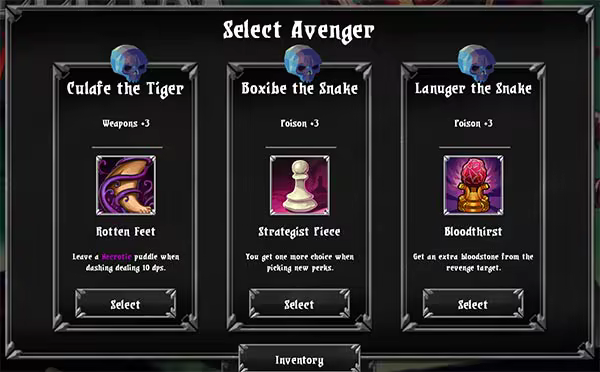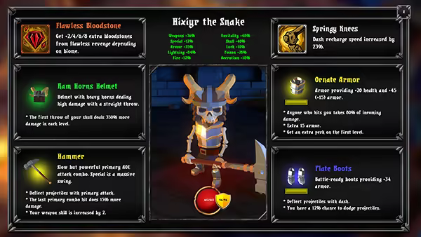 选择一个骨人作为你复仇的工具。每个骨人都有一套独特的技能和天赋供你选择。引导你的复仇者通过独特且具有无限多样性的由程序生成的挑战,最终报自己被谋杀的仇。