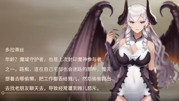 游戏介绍 在一个叫魔域的地方封印着能毁灭世界的魔神,但是有迹象表明封印出现了问题,如果魔神破除封印重返世界,那世界将在他的怒火下毁灭。 游戏特色 ◇在这个魔法世界中,接取公会任务赚取金钱,任务等级越高难度越大收获也会丰厚,不过记得多备一点恢复药剂。 ◇在没有城镇保护的野外,不仅有随时能遇到的魔物,也有遗落的宝箱。 ◇每个城镇里面都有可以雇佣的NPC,每个NPC都有不同的特点,可以在你战斗中召唤出帮助你进行战斗。 ◇如果你想也可以在特定地点进行钓鱼,钓到的鱼可以卖给商人换取金币。 ◇封印之塔每层都有不同楼主守护,不过通过的方法不一定只有一种。 角色介绍