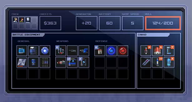当重要的飞船受到损伤时记得好好修理哦。自己尝试维修倒是很便宜,或者也可以付出金钱交托给专业人士。安装全新的防御粉碎炮、或者装载原子导弹,做出这些决定也是船长的工作。