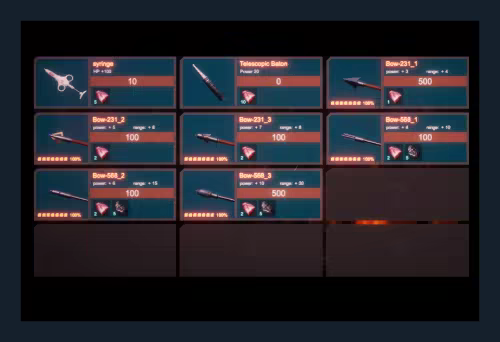 1.你首先会获得一把很初始的弓,射程相对短攻击力弱,你可以通过捕猎获取一些需要的物品,去营地研究,他的攻击力和射程会加强,山谷中还有其他的武器,是随机出现的,包括敌人也是随机出现的,你可以去探索山谷,获得更强大的武器,当你比较弱的时候建议可以再山谷中寻找兔子。