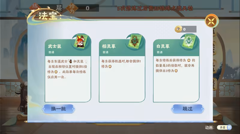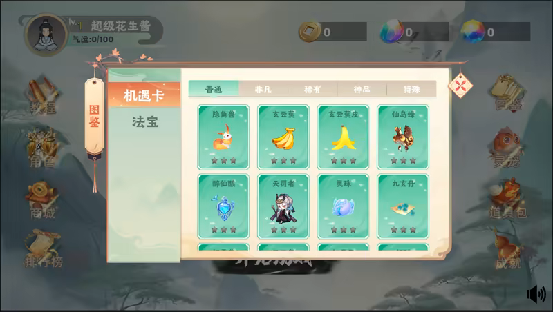 机遇卡牌:玩家通过抽取机遇卡来获得修炼资源和方法。每种机遇卡都拥有独特的属性和技能,当特定组合的机遇卡相遇时,将触发强大的特殊效果,助力玩家快速提升修为。