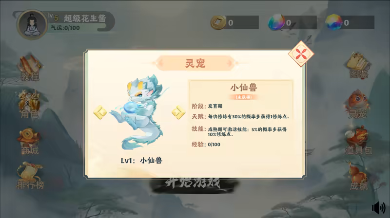 灵宠:灵宠是玩家的忠实伙伴,它们拥有独特的技能,可以帮助玩家在修炼取得优势。