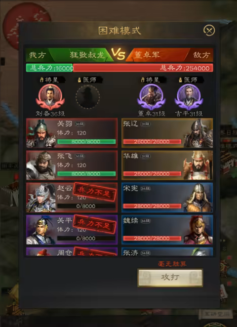兵力是战斗的基础,武将需带兵方能出战,阵亡兵力需耗费资源才能补充。