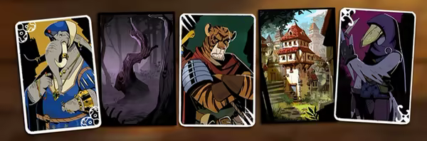 《预言奇谈》是一款剧情丰富的回合制卡牌战斗游戏。在世界因一个邪恶的预言而注定毁灭之时,玩家将扮演一个名为Volepain的小偷,通过审时度势、结交好友,探明邪恶诅咒的真相,踏上决定世界命运的奇幻之旅。亦正亦邪间,Volepain到底是拯救还是毁灭世界?一切由你定夺。