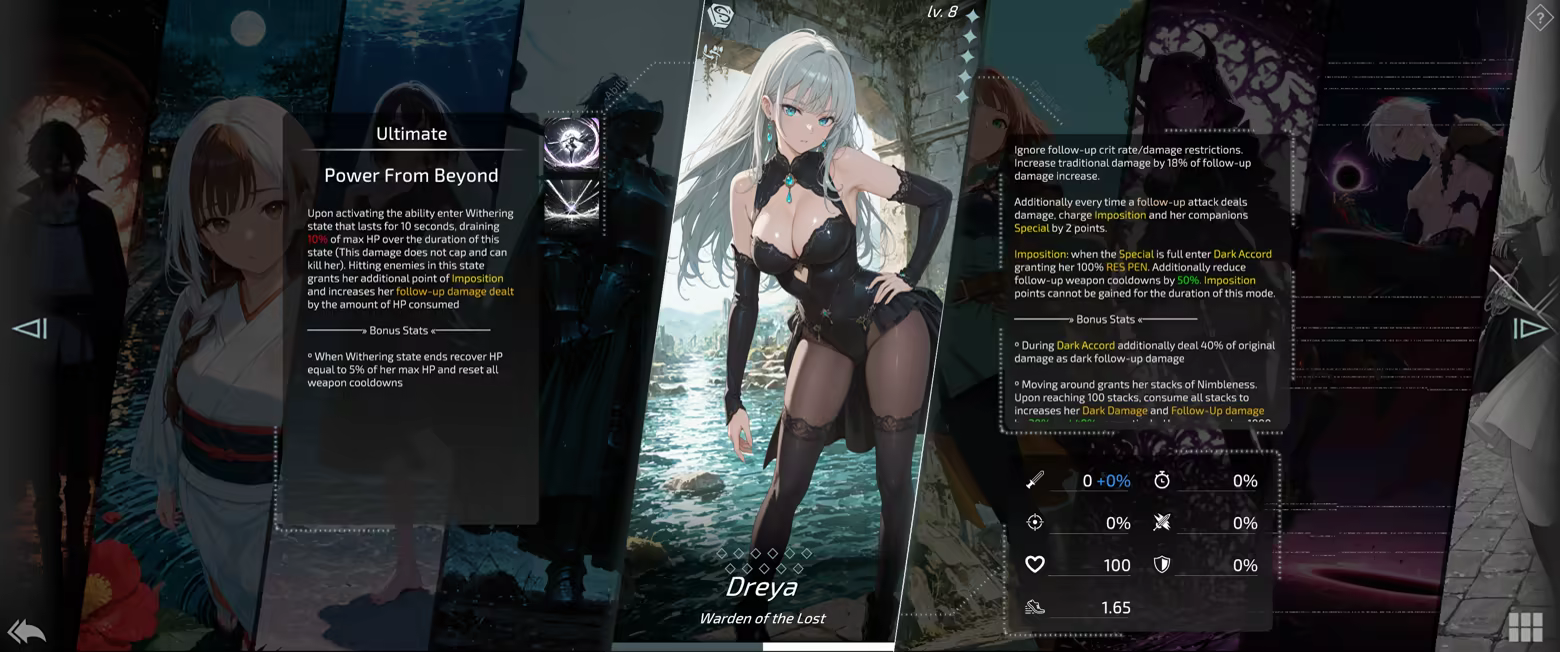 Each character benefits from different stats, and it's up to you to find the perfect balance or define your own META build!