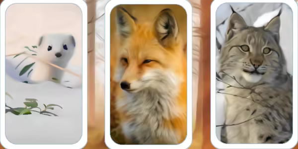 • 一张可爱的牌甲板,上面有18张芬兰常见动物和鸟类的图片。