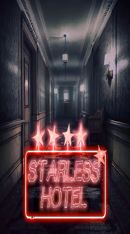During a stormy night, Kyle Hoover is forced to spend the night in a 5-star hotel in the middle of nowhere in Kansas. He will soon discover that the hotel is quiet and nobody seems to be there – only the rainstorm and the thunders outside are audible. Sometime, the ‘voices’ of her lost daughter makes their appearance in the corridors of the hotel. In addition, once he find the key of his room and go to sleep, a terrible fate falls on him. In fact, when he wakes up, the hotel has 4-stars, and not 5-stars anymore. This is reflected also in the general design of the hotel, with a darkish tone. Kyle try to find a way out of the hotel, but with no result. Eventually, he goes to sleep again. When he wakes up, the hotel has 3-stars… And so on… Always… Forever… Will you be able to escape from this impossible situation? ___________________________________________________ General Gameplay Features Starless Hotel is a unique horror game where you need to explore the same environment but more and more horrific when the game evolves. The core of the gameplay of Starless Hotel is centered on solving puzzles, by finding keys, reading documents and finding codes for safes. Detailed Gameplay Features The game is divided in 6 sections: in each section, the main character (Kyle) have to find a way to access a specific room of the hotel. The player can do this by looking for keys around the areas. In order to find each specific key, there will be hints around the hotel. These hints are in forms of notes, newspapers and drawings, that the player need to interpret in order to find the object of interest. Main Game Aspects - A weird mystery to solve - An investigation of a strange hotel that changes aspect every night - Frequent jumpscares during the exploration of the hotel - An amazing backstory and psychological plot