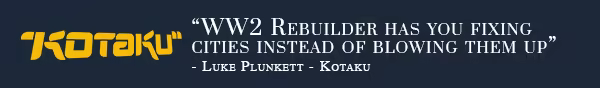 让欧洲在第二次世界大战后的灰烬中重新站起来吧! 停战并不意味着能立即恢复到正常生活。第二次世界大战在欧洲多个城市留下了它的印记,新时代的英雄们必须把它们从废墟中拯救出来 - 普通市民也不遗余力地贡献出他们的微薄之力,重建被催毁的房屋、街道以及工厂,盼望他们的国家能有一个更好的未来: 看看欧洲的这些城市,比如被闪电战轰炸摧毁的伦敦,看看第二次世界大战造成的巨大破坏。立即投入工作吧! 清理城市的废墟,之后你就可以开始计划重建了。切割残垣断壁,拆除废墟。没被损坏的砖块还可以再重复使用,甚至普通的垃圾也可以用来填补街道上的空洞。 填补墙壁上的缝隙,盖上新的屋顶。让街道、人行道和公园重新恢复昔日的样子。让铁道恢复通行,让工厂处于生产准备状态。由于你的努力,往日的辉煌和生命将回到城市中。