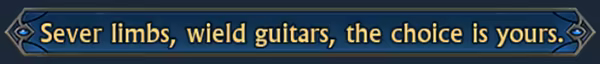 "这是你从不曾体验过的《剑刃与战靴》。在残酷的回合制战斗中,角斗士们虽然面临着身肢磔裂的危险,但是他们亦可从容地弹奏吉他,高声疾呼——声音大得甚至可以直接让敌人身首异处。竞技场中最大的乐趣莫过于此,然而,这仅仅只是一个开始。