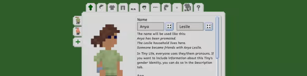 - Integrate your own story into your content by writing descriptions for your Tinies and lots