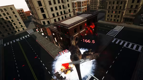 《VR巨兽城市》是一款VR冒险游戏,恐龙逃出人类的囚禁,在城市里面临着人类的坦克火炮攻击,玩家操控恐龙对人类坦克进行反击。