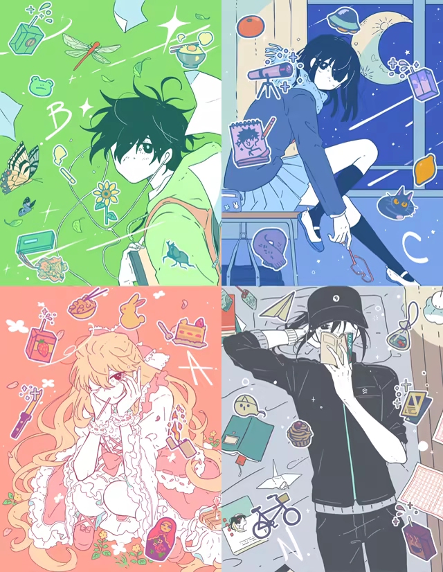 Unlike her childhood, B found herself often surrounded by people in her teenage years. Being the ace of Mokuzai High school's track team and having a prince-like demeanor, her classmates were drawn to her aura. She was practically the opposite of what others thought her to be: a reserved and old-fashioned individual that spent her days collecting and raising bugs. She soon found safety in the Occult club alongside others similar to her who all had strange interests of their own — A, the uncontrollable troublemaker, C, her neighbour that always had a tendency to daydream, and N, the mysterious leader of the club. However, by the end of their senior year, both A and N disappeared without a trace.