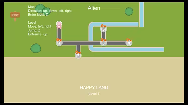 "外星人"是一款卡通风格的2D平台跳跃类游戏. 玩家需要控制自己的角色以躲避敌人,最终到达终点才能获胜.