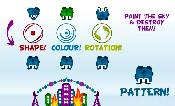 流星将从天空降临,摧毁城市。你的目标是 创建气泡来改变它们,使其与武器给出的模式相符。