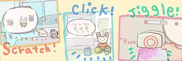 Please enjoy my mini-adventure with Becca the bunny! It'll probably only take you around 40 minutes to experience it, but I hope you feel the care and love I put into all the hand-drawn art and original music for this cozy, point-and-click story. Story Becca has moved to a new town and is attending a new school. On her first day, Becca is having trouble fitting in but learns that her new school is having an art contest. Since Becca loves to draw she decides to enter the contest by joining the school’s art club. When she arrives all she wants to paint are her feelings for Sora. There is only 1 month until the contest ends but Becca's growing anxiety about her missing pet and life at a new school are making things hard for her. In this interactive story you follow Becca's daily routine for a few days and get a peek into some of her inner thoughts. Let's help Becca move forward through the first month at her new school - and find new happiness. Good luck, Becca! Game Details: Charming point-and-click interactive mini-story you can enjoy in about 40 minutes 5 main chapters split up over different days Several mini-games in different scenes with simple controls (clicking, drag and drop, tapping, etc.) Extra scenes available after finishing the main story Don't forget to collect all the keys to see Becca's Memory Album All art and background music are original by Slimomo