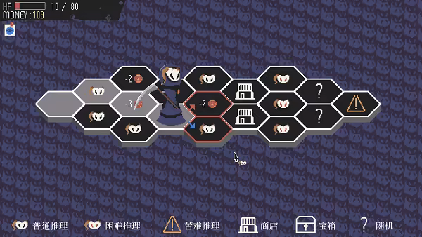 从案件、商店、宝箱、随机事件等各种各样的棋盘格中,选择你想要前进的道路。