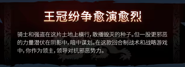 王冠纷争愈演愈烈。骑士和强盗在这片土地上横行,散播毁灭的种子。在这款回合制战术和战略游戏中,从你的城堡基地逐步崛起成为领主,领导对抗邪恶势力。