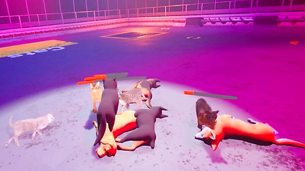在游戏中,玩家将随机选择队伍,成为猫队或狗队的一员,并操纵其中的一只动物进行战斗。玩家需要配合己方的队友进行战斗,操作自己的动物击败对方队伍。当玩家操作的动物阵亡后,视角会自动切换到随机一个队友的视角,让玩家体验不同的战斗视角和策略。游戏中有7种狗和10种猫,游戏开始时会随机选取5种进行对战,为每一局游戏带来无限可能性和刺激感。当一方全部阵亡后,另一方获得胜利,游戏结束。