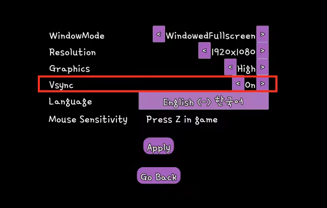 另外,对于经历屏幕撕裂(在小区域断裂)的人,可以在主菜单的设定中打开Vsync. 但提醒,开启Vsync可以降低游戏的性能.