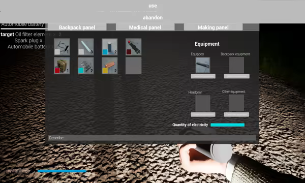 当你在途中发生意外时,你应该如何安全逃生?你需要在游戏中找到你需要的东西,然后离开这里。 这是一款硬核生存逃离类游戏。 游戏主要玩法 这款游戏的玩法主要是以寻找物品然后逃离为主 游戏中还有会有各种怪物阻止你们寻找这些物品 游戏特色 玩家需要在食物和各种物资有限的地方生存和逃生。 而且你需要时刻注意地图上的危险。 开放式背包系统 玩家可以自由携带物品与搭配装备 拟真的医疗系统 你受伤了不能快速恢复血量,需要使用医疗包之类的物品才可以恢复 游戏中还有出血系统,一但玩家出血不止血那就会因失血死亡 游戏中还有止痛药,使用后可以减少攻击代来的疼痛和模糊 以后我们还会让他更拟真,这是我们的主要目标之一 手机系统 游戏中的手机内有集合了很多实用的软件(信息,导航)这样能方便玩家更好的通关游戏 并且还会在以后加入更多的功能 多种多样的怪物 每个地图都有属于他不同的怪物 每个怪物都有他不同的特效,玩家需要了解这些怪物并且做出反应 地图的故事 你可以选择找到你需要的东西后立即离开,或者探索这个区域发生了什么。 游戏支持1~4名玩家合作。