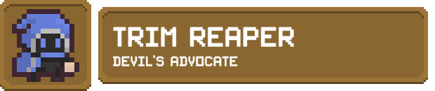 An unknown being, similar to an eldritch horror, has changed their form to participate in their favourite competitive sport. To make it fair, Trim Reaper has taken on this persona and will still use some of their weaker godly powers to best their foes. Using a combination of their trusty scythe and unearthly powers, swat opponents away with their superb range.