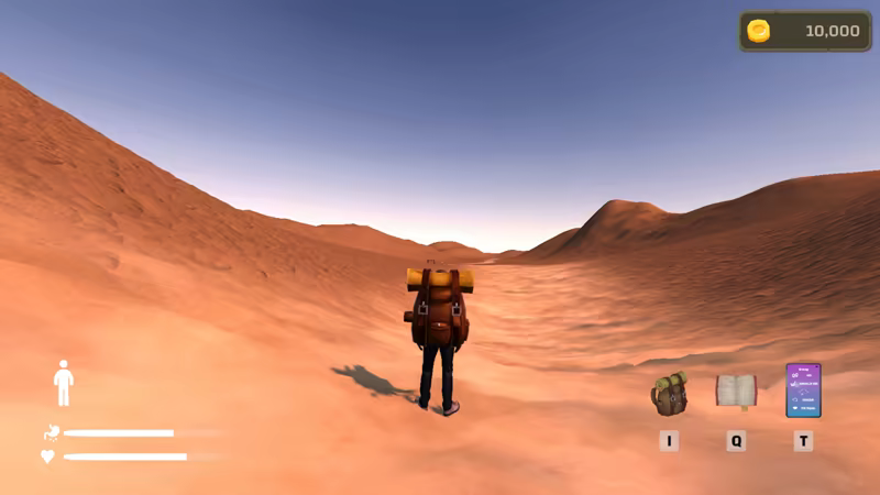 沿着漫长的道路开始一段宁静祥和的旅程!当你走向一条很长很长的路时,你应该做好充分的准备。这样你就能看到这场比赛的结局。玩家拿着帐篷和钱,走到路的尽头。红色屋顶商店出售各种旅行用品。这些项目将对您的旅行有很大的帮助。您可以在街道中间的露营地放松和做饭。强烈推荐我从烹饪中获得的食物,因为它可以更多地填补我的饥饿感。玩家将在各种环境中行走。(森林,湖泊与水平意见,干燥的沙漠等) 此外,你可以知道的距离,天气和时间,你走你的手机上。这个游戏的目标是走很长的路,到达终点。玩家无法保存进度,因为没有检查点。没有自动移动,所以你必须有耐心,自己前进。最后,这条路的尽头是什么?