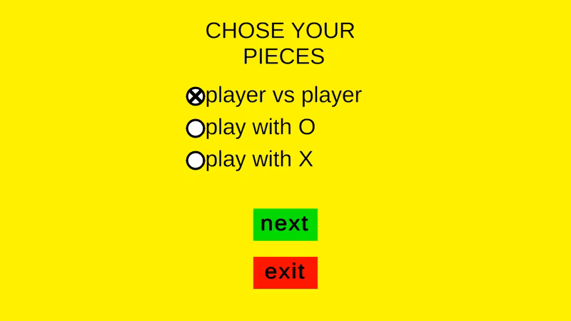 一种新版的tic-tac-toe,其中较大型的棋子可以占据较小的棋子的空间,玩家X和玩家O都从2个大棋子,2个中棋子和2个小棋子开始放置在棋盘上. 凡完成一列,一列,或对角线先胜者. 如果玩家没有空间放置他的作品,或者两个玩家的作品已经耗尽,游戏以"velha"的图画结束. 你可以挑战一个朋友来玩你,也可以玩电脑,你可以挑战三个不同的关卡,即随机关卡,中间关卡和完美的关卡.