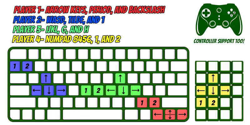 Studio 410的GMU Blastmaster Battle是对经典Bomberman公式的丰富多彩的重新构想,并带有健康剂量的GMU spirit。扮演四个以GMU为主题的角色之一,并在三个美丽的阶段使用大量的通电来获得胜利!以下是Blastmaster Battle的一些功能:-与您的朋友战斗: 最多四名玩家可以通过本地PvP中的键盘或控制器进行游戏,也可以通过Parsec等第三方进行游戏。仅支持XBOX或类似控制器; 按钮1为A,按钮2为B。后退是开始按钮。-Gamemodes: v1.1中实现的主要游戏更改是添加了可选的gamemodes。他们可以做很多事情,从改变小东西,比如什么时候掉落到大东西,比如开始一场没有块的比赛,甚至每隔几秒钟就改变炸弹类型!可以在经典Blastmaster体验的设置中禁用它们。-教程: 我们已经彻底改革了教程屏幕,添加循环教学视频介绍炸弹类型,通电,和一般的方式来发挥。-获胜跟踪: 对于每个参加那些生病的通宵Blastmaster LAN派对的人来说,游戏追踪谁赢得了最多的游戏,他们的角色上方漂浮着漂亮的小皇冠。现在你就知道下一场比赛该和谁联手了!更多!