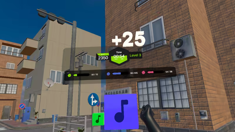 击打音乐节拍时出现的目标,可以选择用手或控制器演奏. 你必须绕着游戏区域移动,以获得到达地板上的目标,漂浮的目标会随着不可预测的行为而更快和更快. 得到最高的分数 并尝试保持你的运行。