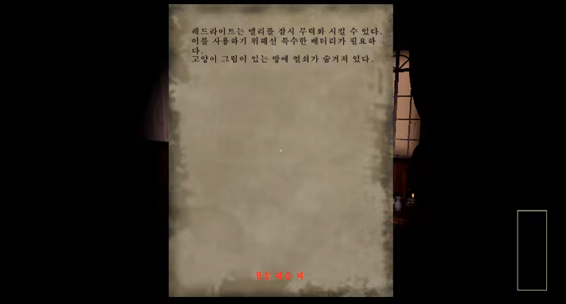 所有你获得的线索都记录在这篇论文上. 你可以随时按下[R]键检查它们. 这篇论文具有特殊的力量,因此除了真实的线索外,你可以破译虚假的线索和诅咒,方法是将线索附在手中,并与家里的蜡烛进行互动.