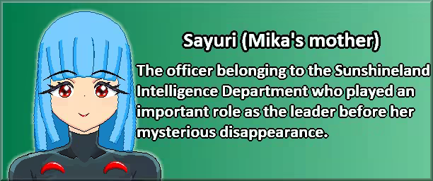 在美嘉成功保卫了日照兰地东部边界,抵御敌军士兵的攻击之后,她被指派执行一项特殊任务,这项任务不仅与日照兰地情报部门有关,而且与她的生命有关。 大约在10年前,美嘉的母亲,当时的阳光之地情报官萨育里突然失踪,毫无踪迹,阳光之地军队的几乎所有成员都认为她死了. 美嘉一直相信有一天她会和母亲团聚,并且她还活着. 但直到最近,她的下落连一点线索都没有,阳光之地的情报部门能够追踪到小须里的位置,他们得出结论,她还活着,并被关在位于Rogho Corporation境内某处的一间特别牢房里. "阳光之地勇士"的老板委托美嘉承担着不惜任何代价救回萨乌里的特殊任务,因为她是阳光之地情报部门的一员.