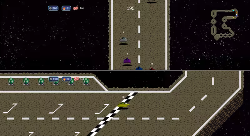 在不同的星球上冒险,每个星球有3条充满挑战的赛道,布满独特的障碍和奖励。赢得比赛,积累积分,解锁新赛道,随着进度的推进,竞争会变得更加激烈。只有最有技巧和策略的车手才能生存并晋级到下一个阶段!