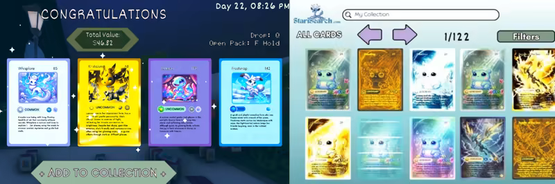 Use your shop’s profits to buy card packs for your personal collection, where every pack is a chance to discover valuable cards that you can keep, sell, or trade with friends to build the ultimate collection!