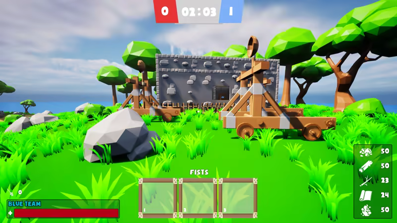 团队合作是关键 使用弹弓将队友发射到敌人的屋顶上,建造路障以防御临界点,或者用墙钉潜过敌人的防御. 投入激烈的玩家对玩家的战斗中,使用各种可巧妙的武器,如剑,矛,斧,弓,以及大炮. 你的团队会依靠野蛮的武力,狡猾的战术,还是聪明的团队合作来夺取旗帜并声称胜利?