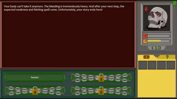 弗莱德的汽车在一片森林中崩溃,迫使他寻求帮助. 但是他很快就发现 事情正在发生 你在这个基于文字的选择游戏中的目标是帮助主角生存,直到他揭开这个地方的奥秘并与他的女儿苏珊团聚.