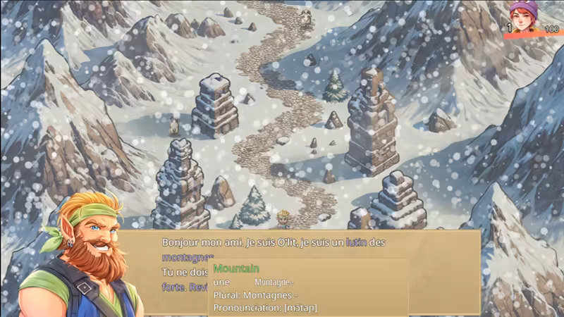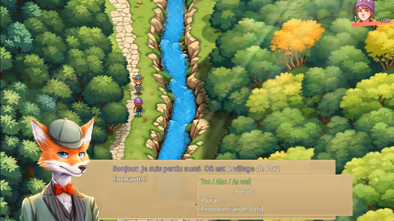 欢迎来到WonderLang,在那里掌握法语变成了一个引人入胜的RPG之旅。让自己沉浸在迷人的任务,互动对话和有趣的谜题中,旨在使语言学习无缝和愉快。我们网站上提供的演示: WonderLang将语言编织成其冒险和引人入胜的叙述的核心。沉浸在Wonderlang,当你: 探索,战斗,交谈和调查使用你的目标语言。比任何基于订阅的语言学习应用程序更实惠,更吸引人,更有趣!WonderLang是专为初学者语言学习者,让你潜入游戏没有任何语言的先验知识。虽然游戏的目的不是完全取代传统的语言课程,但它提供了一种沉浸式和愉快的方式来逐步练习一种新的语言。主要特点沉浸式法语学习通过每次对话,任务和谜题学习实用法语。超过40小时的学习和游戏相结合。3种模式来适应初学者,A1和A2级学习者的难度。引人入胜的故事情节跟随一个年轻英雄的旅程,他必须学习法语才能从他们的兄弟那里解除魔法诅咒。探索充满活力的村庄,揭开秘密,并与60多个独特的npc建立友谊。作为游戏机制学习解决难题,并通过形成句子和理解对话来完成任务。通过语音识别挑战来练习构建句子和发音。利用字典和上下文帮助等游戏内工具来帮助您学习。间隔重复战斗挑战进行基于语言的战斗,以加强语言保留。战斗挑战是使用间隔重复原则设计的,现实世界的背景练习在日常场景中应用你的法语技能,如购买杂货或预约医生。在现实世界中体验实用的词汇和语法,以提高您的语言能力。可定制的学习体验使用各种难度设置自定义您的学习旅程,以根据您的喜好使体验或多或少具有挑战性。设定每日目标并获得实现目标的奖励,帮助您建立一致的学习程序。丰富的互动世界探索异国情调的位置,每个介绍特定的法语词汇和语法规则。参加填字游戏,记忆游戏和字谜游戏等迷你游戏,以使您的学习体验多样化。WonderLang可以使用鼠标和键盘、仅鼠标或仅键盘播放。它在蒸汽甲板上也有很好的官方控制布局。